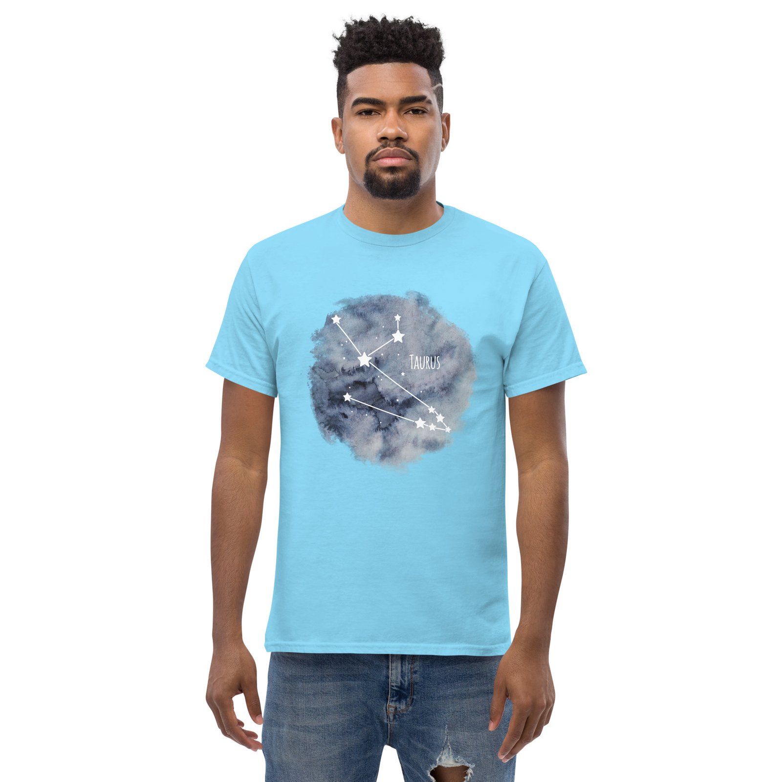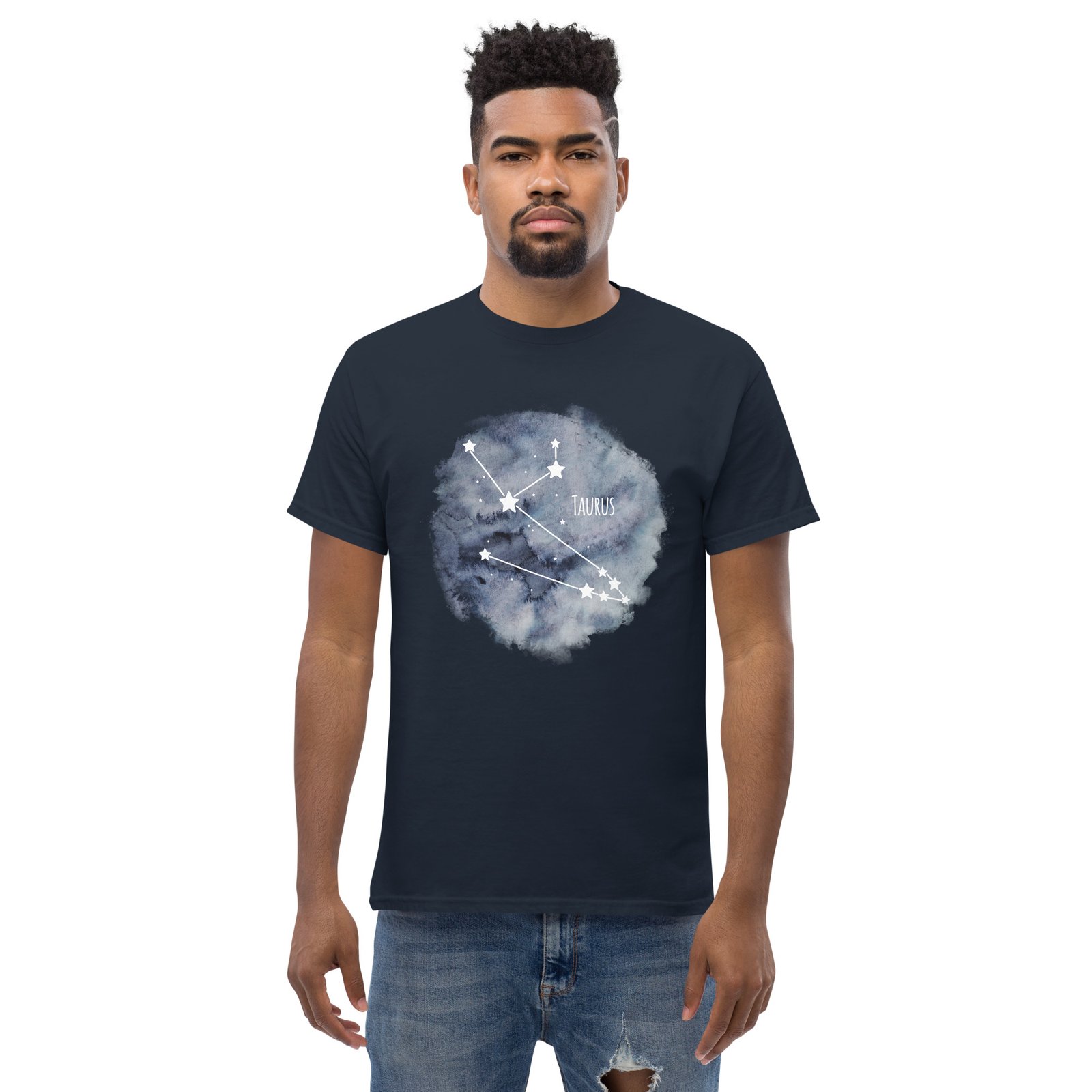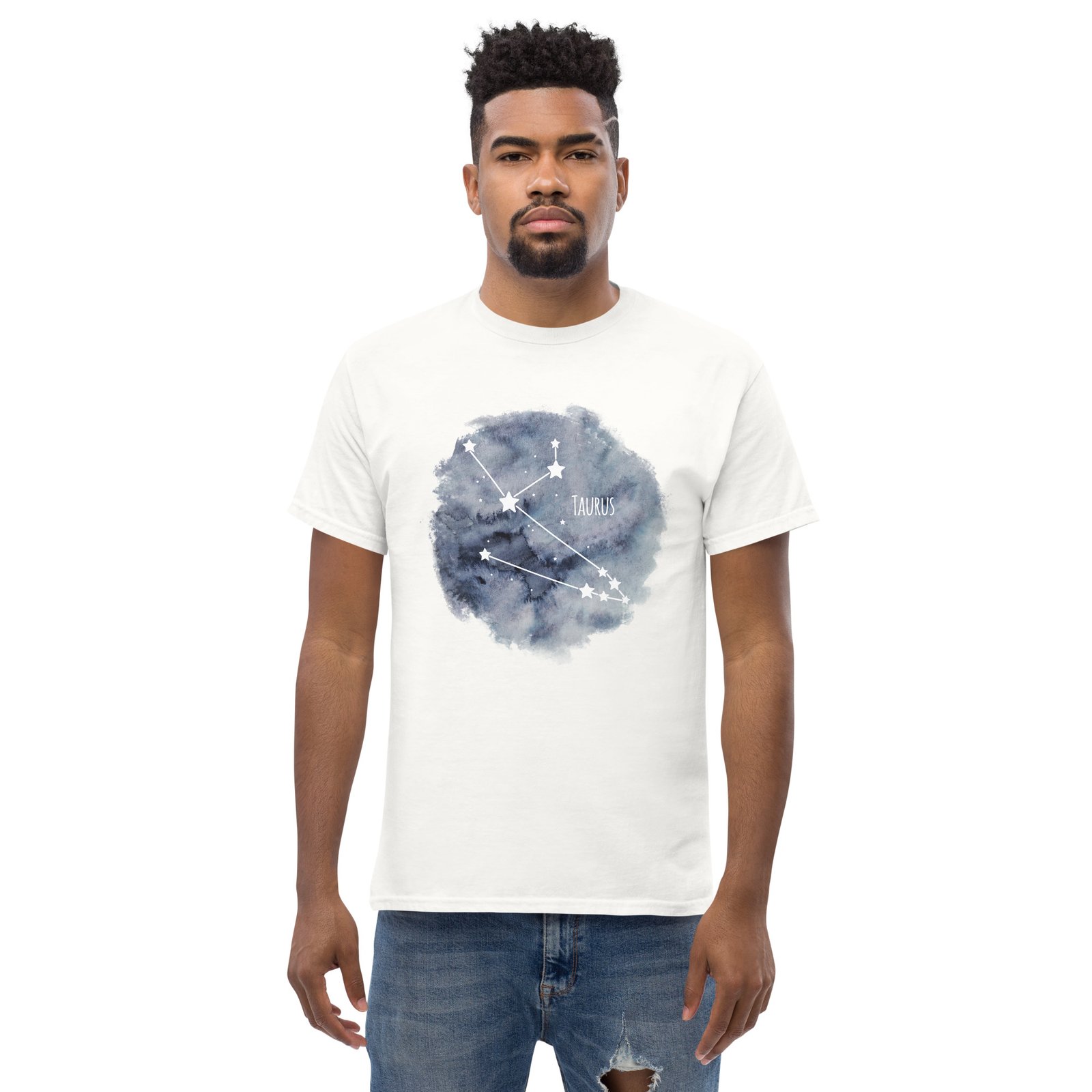 The design represents the Taurus zodiac sign, known for qualities such as strength, patience, determination, and stability. With a clean and modern aesthetic, the graphic creates a subtle celestial look that fits well with minimalist fashion and casual streetwear.