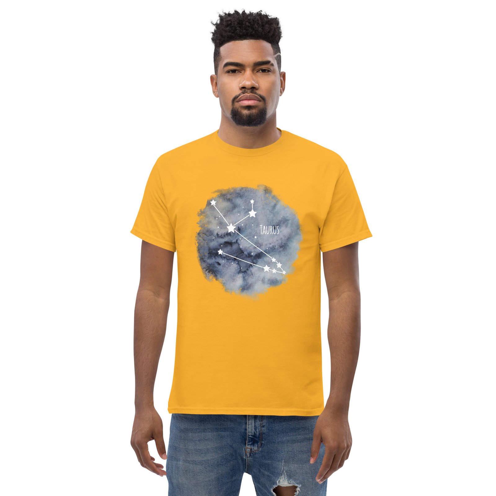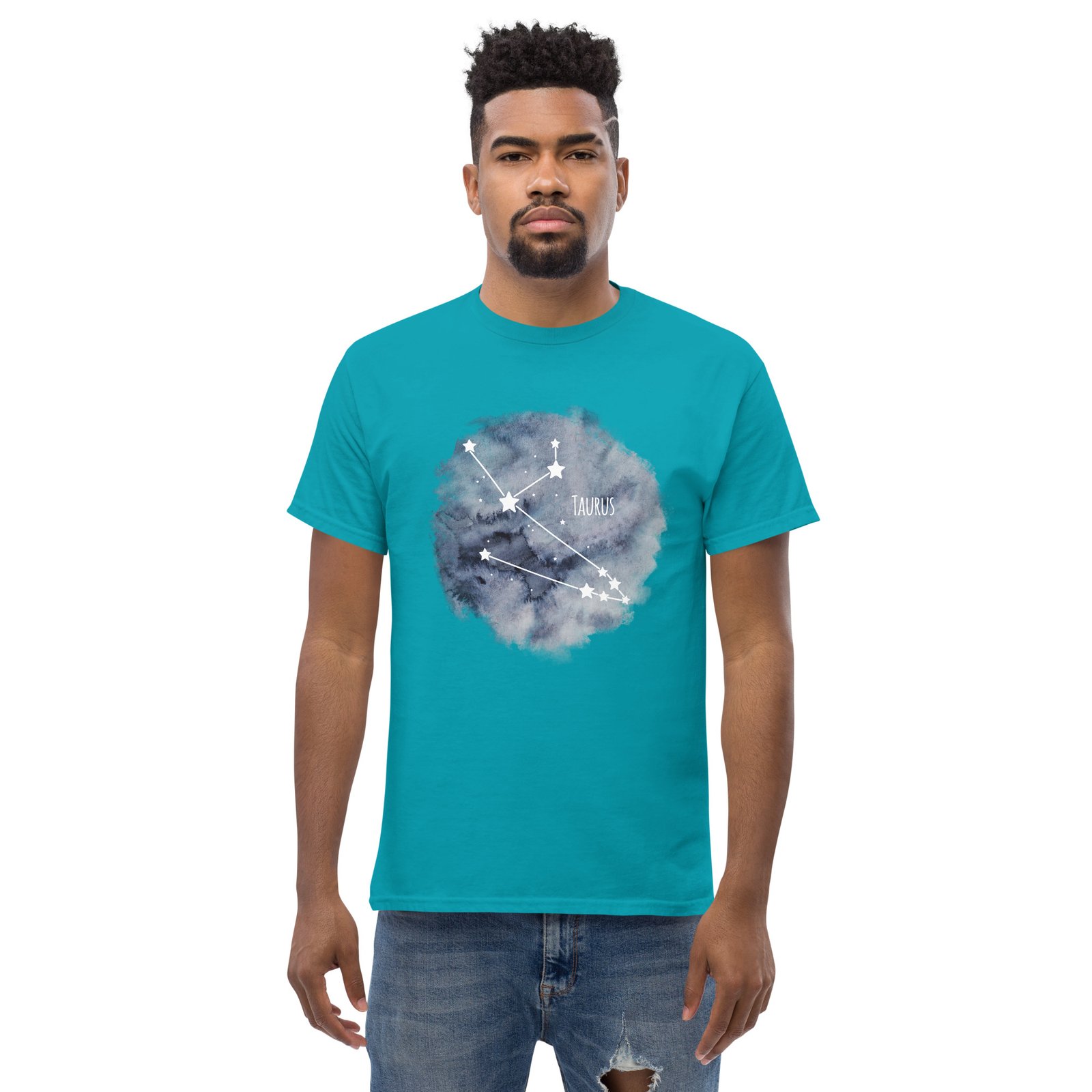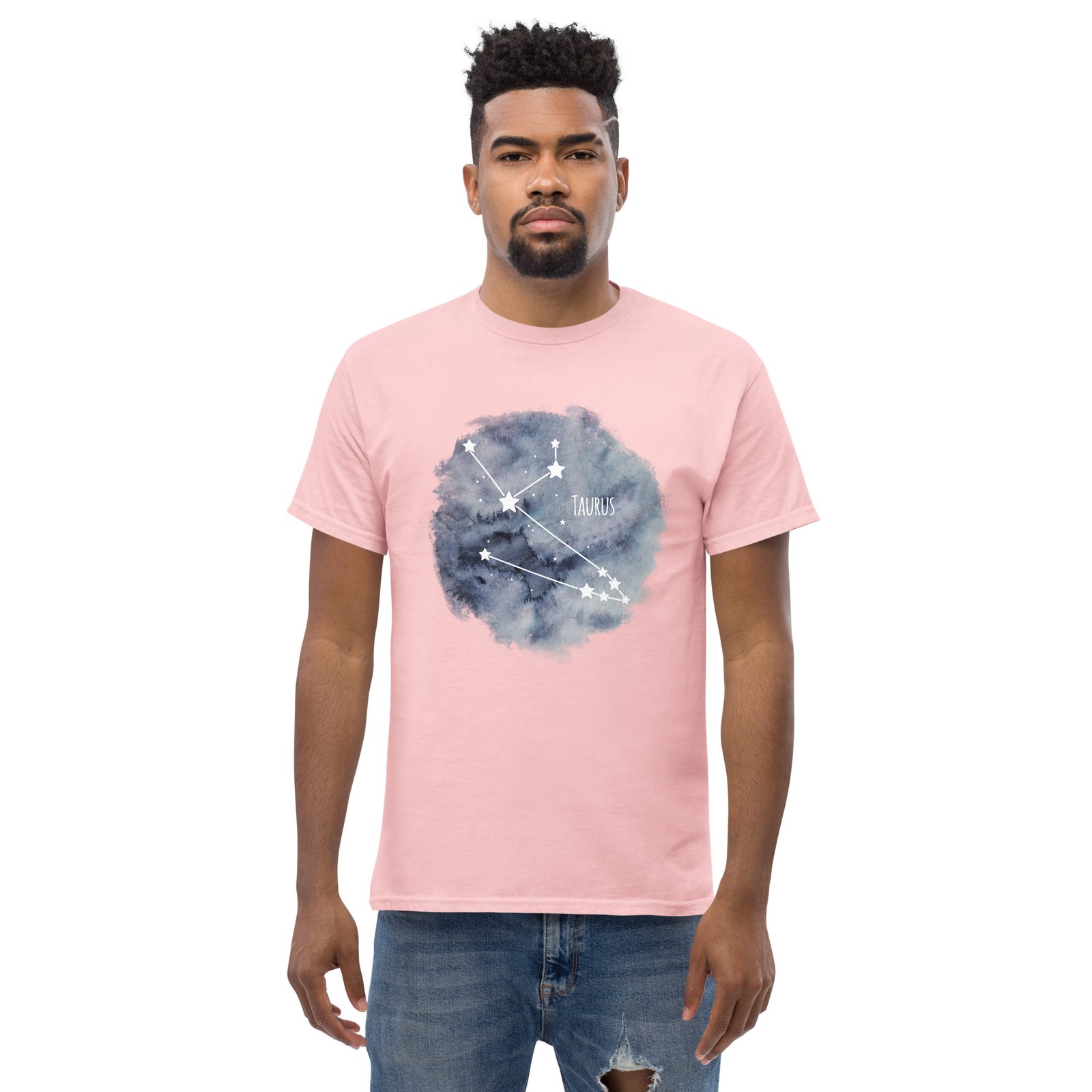 The design represents the Taurus zodiac sign, known for qualities such as strength, patience, determination, and stability. With a clean and modern aesthetic, the graphic creates a subtle celestial look that fits well with minimalist fashion and casual streetwear.